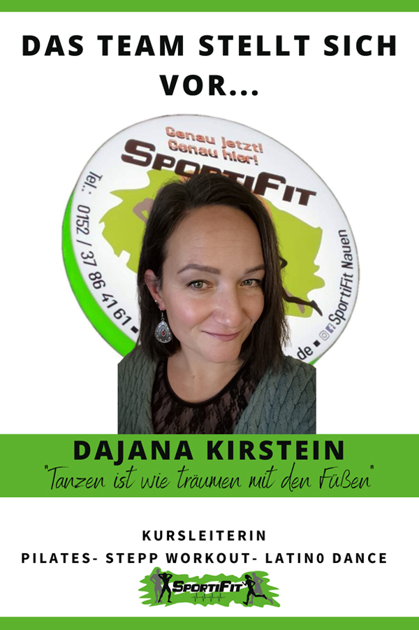 Hallo ich bin Dajana, seit 2013 gebe ich Gesundheits- und Fitnesskurse.
